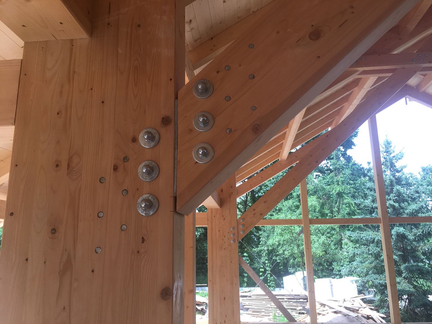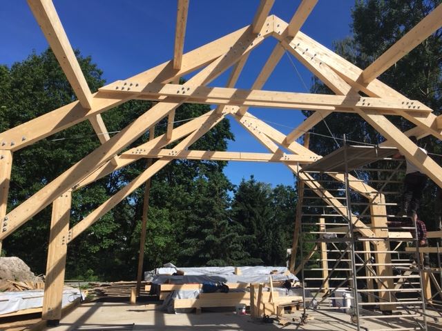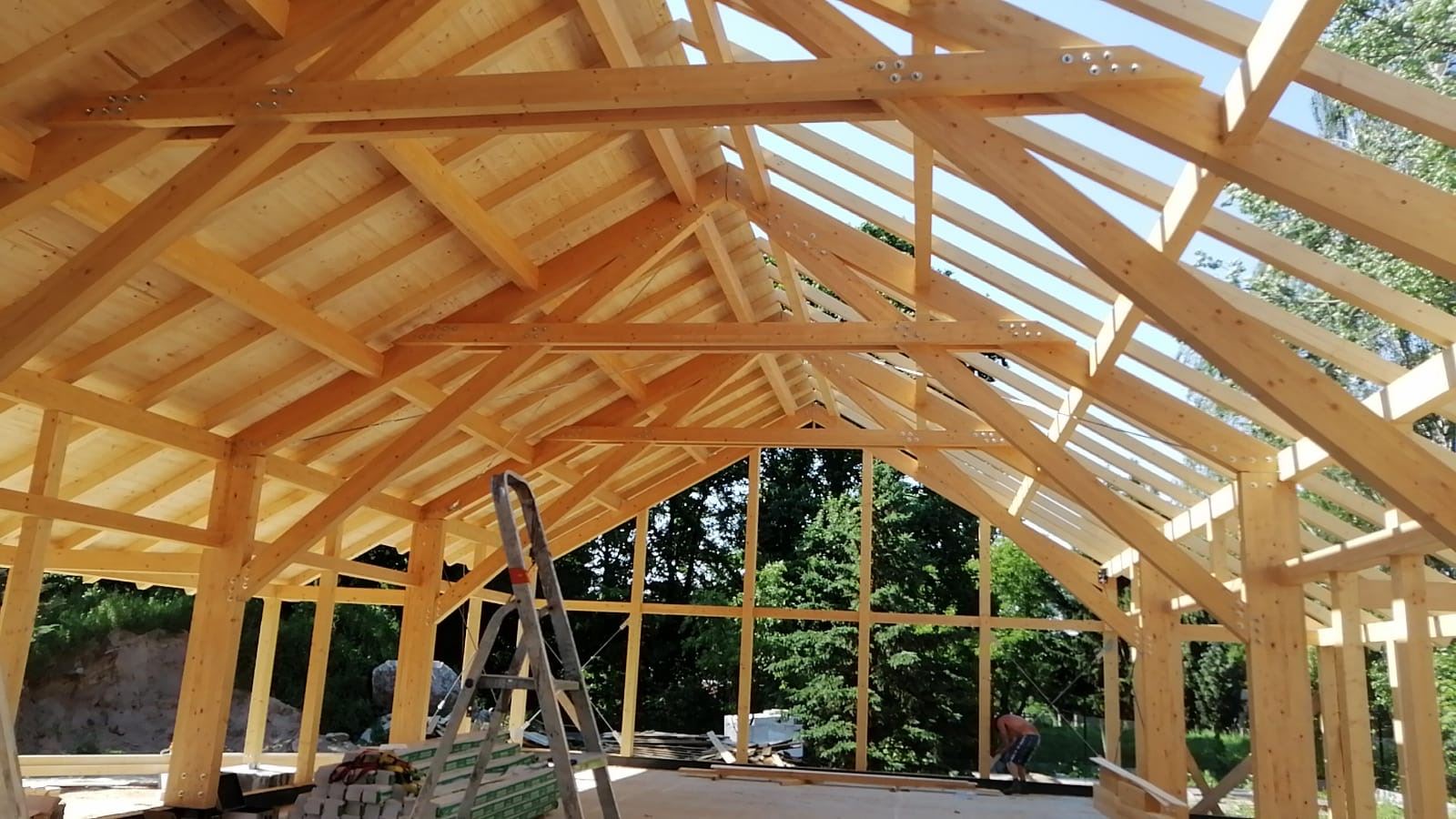 Główne elementy nośne Sali stanowią ramy z drewna klejonego wraz ze ścianami szczytowymi. Konstrukcja wraz z krokwiami i poszyciem dachowym z desek łączonych na pióro - wpust. Sala dobudowana do istniejącego budynku wielorodzinnego.