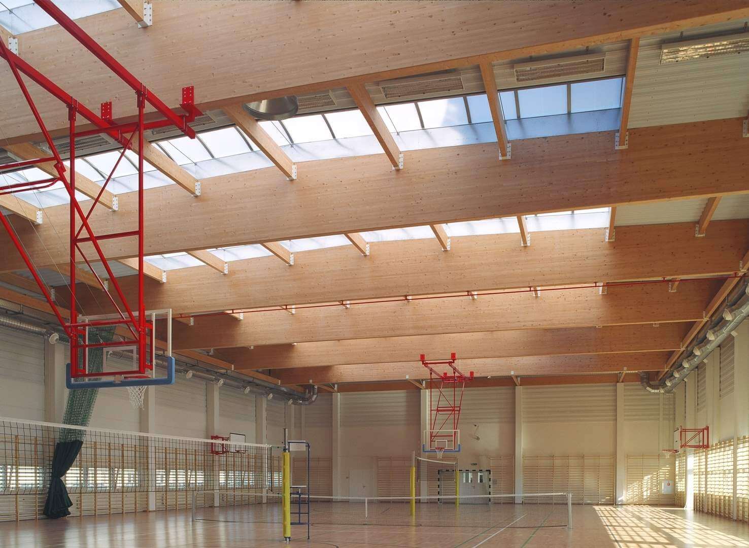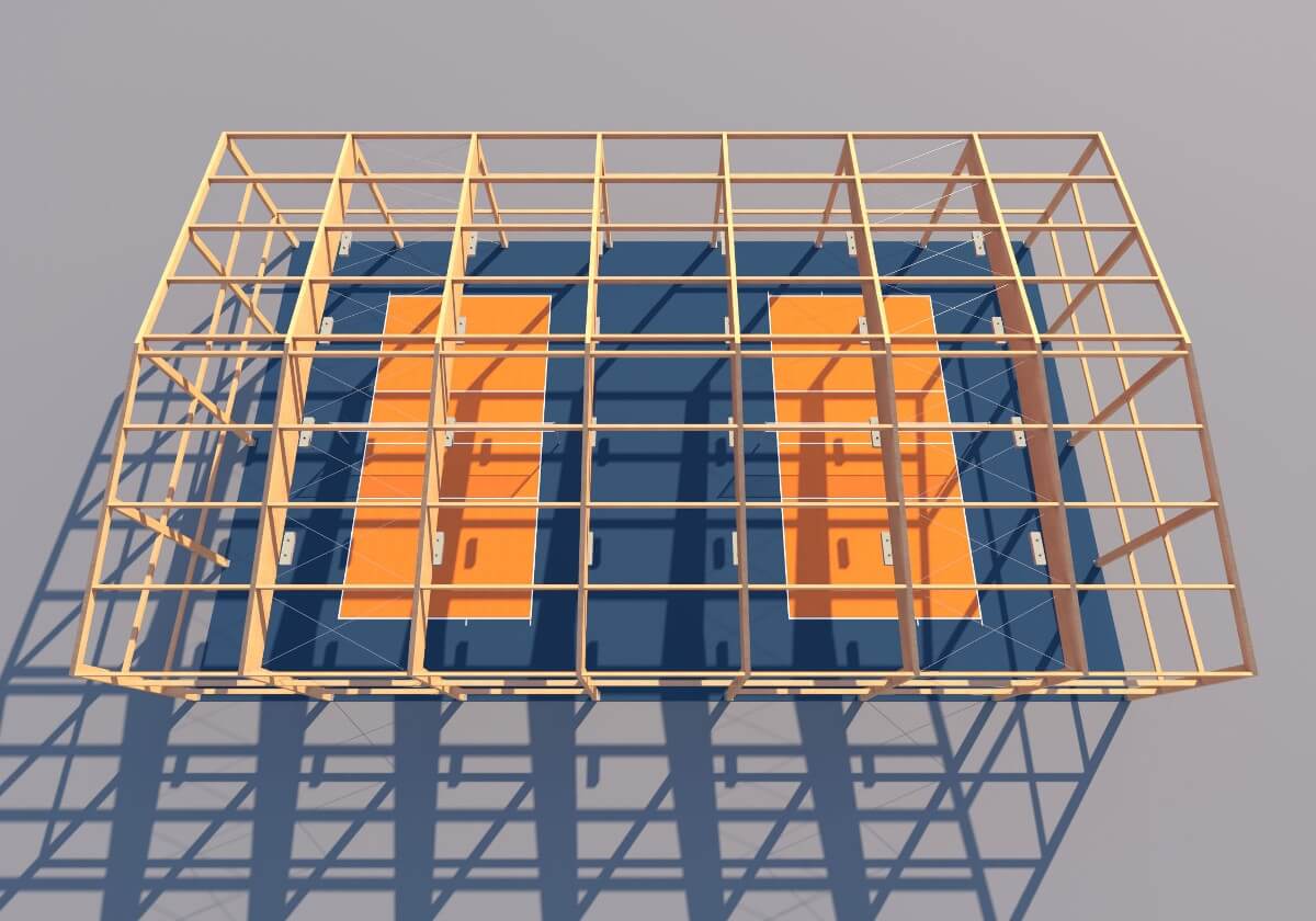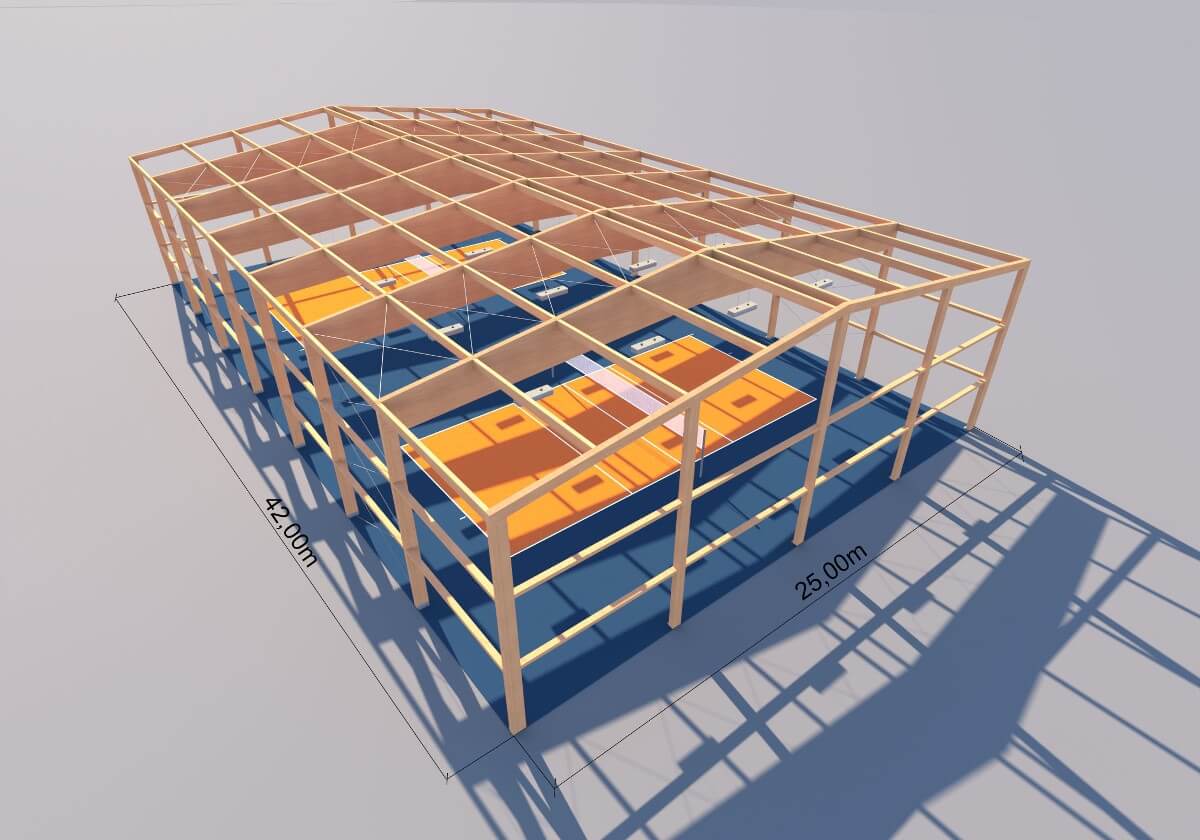 Jest to układ ram typowych (słupy + bumerang) lub (słupy + dwutrapez) w rozstawie np. co 6m. Pomiędzy ramami mocowane są płatwie i rygle. Dźwigary bumerangowe polecane są przy nachyleniu dachu do 12 stopni. Dźwigary jedno i dwuspadowe stosuje się zazwyczaj przy nachyleniu dachu do 5 stopni.