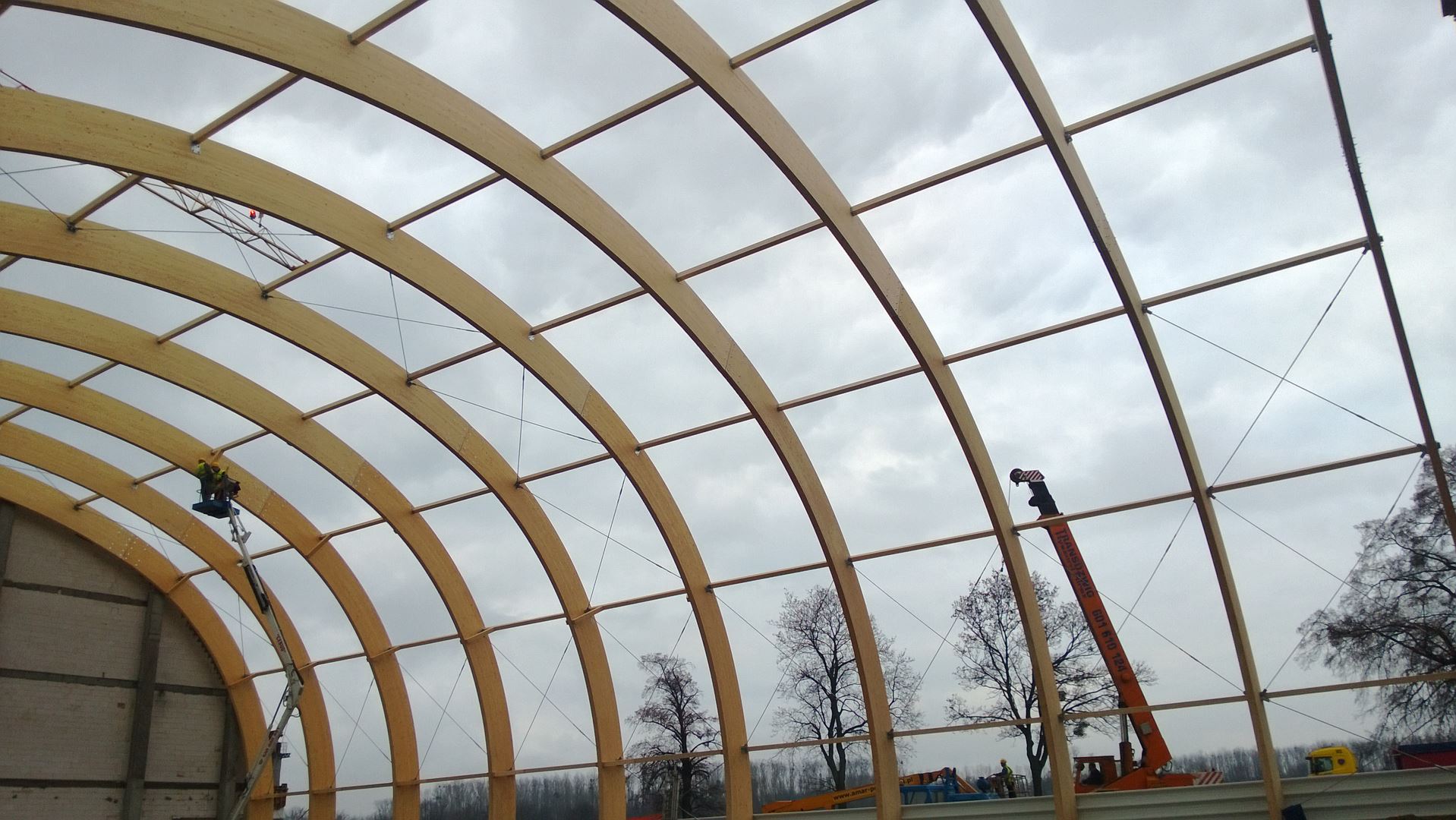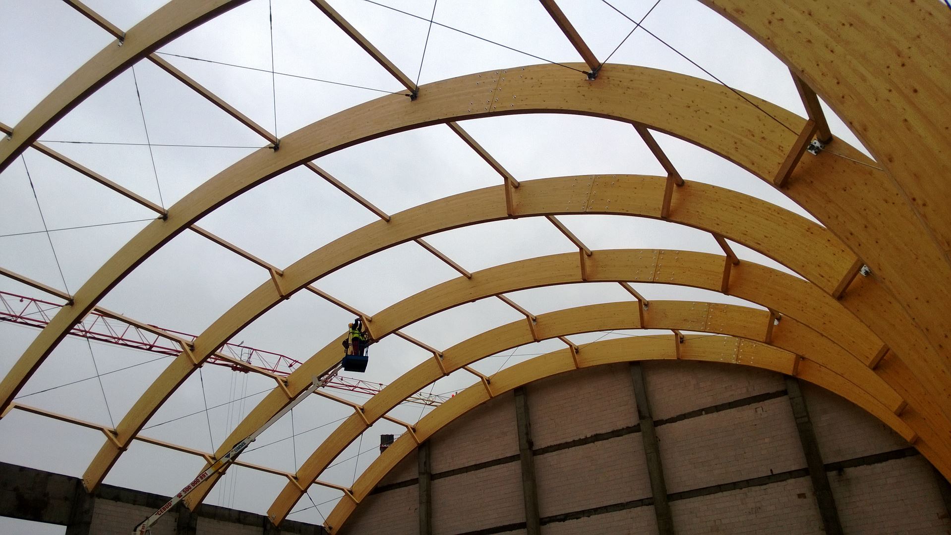 , usztywniony płatwiami stężającymi i zastrzałami.