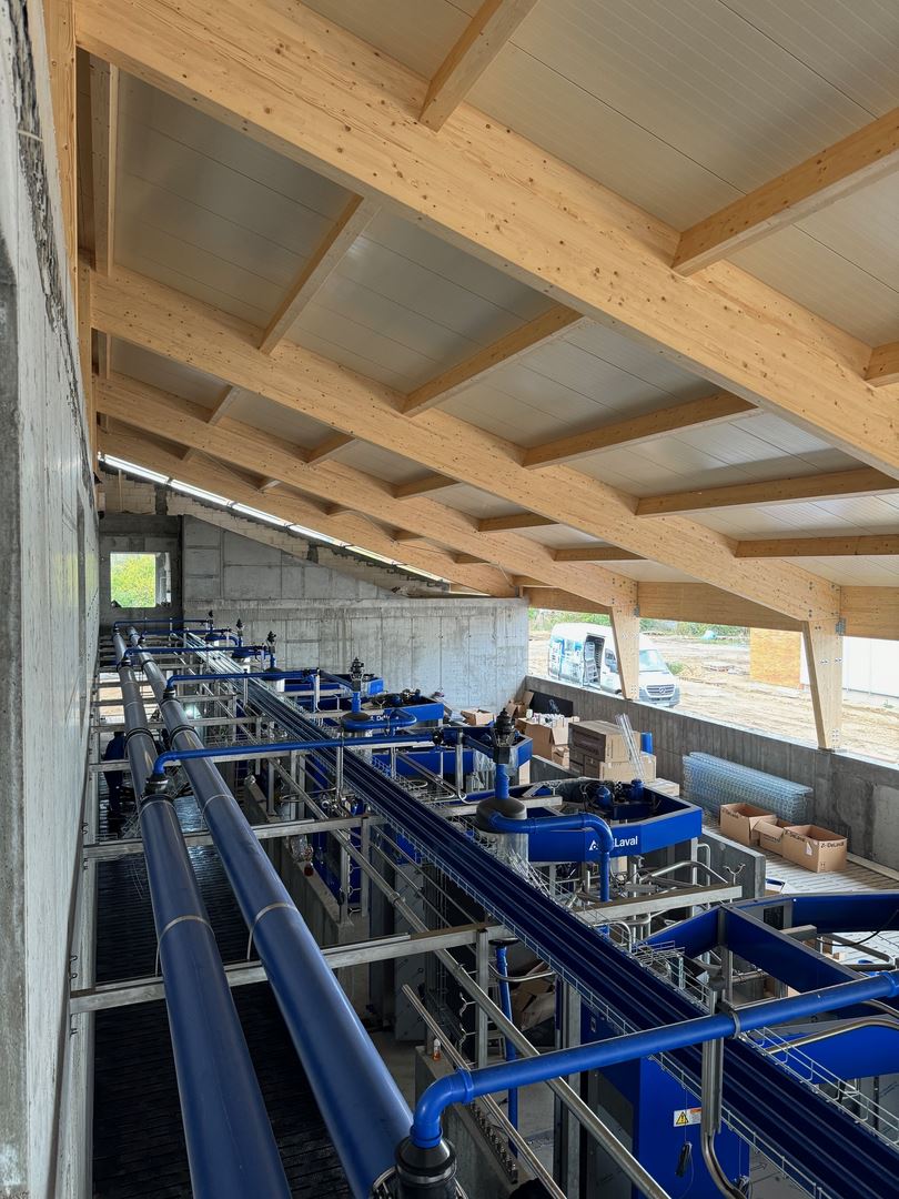 Schemat statyczny głównej konstrukcji nośnej budynku dojarni jest różny dla poszczególnych osi. Efekt końcowy zmontowanej konstrukcji jest widoczny na załączonych zdjęciach.
