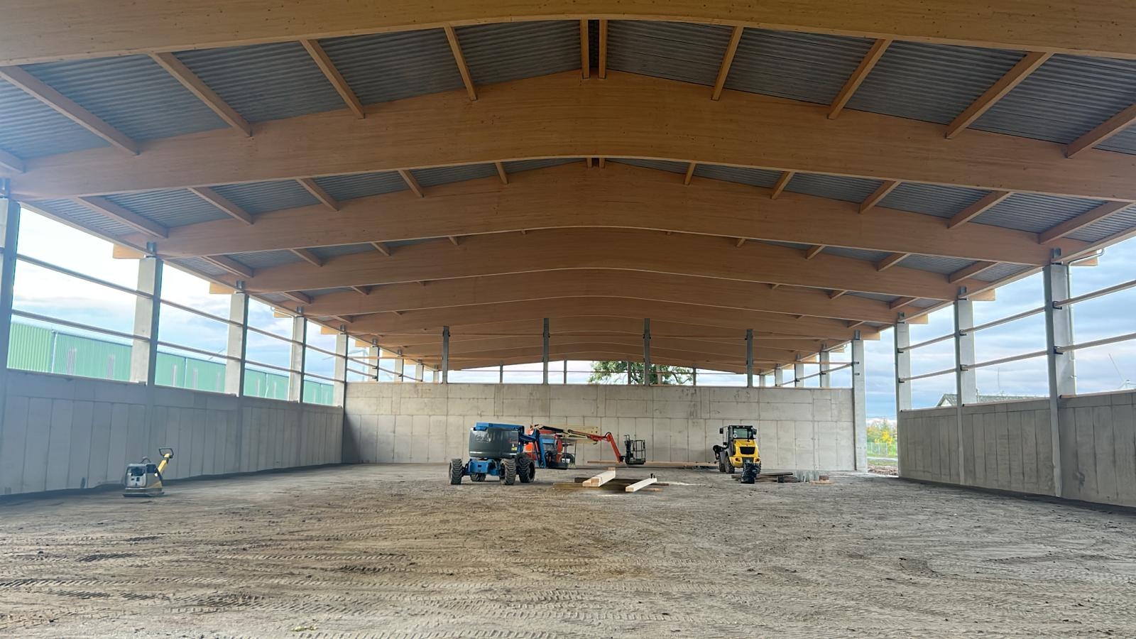 Główną konstrukcję nośną stanowią dźwigary dwuspadowe typu „bumerang” o rozpiętości powyżej 30m. Dopełnieniem głównej konstrukcji są płatwie mocowane przegubowo pomiędzy dźwigarami. Dach usztywniono stężeniami stalowymi.